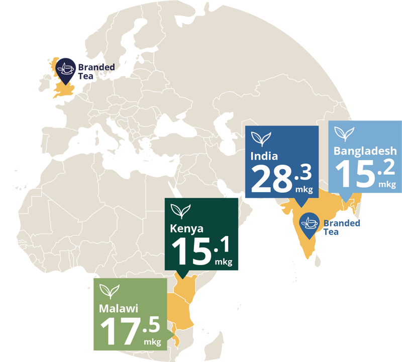 As a group we grow tea in India, Bangladesh, Kenya and Malawi with an output of 76.1 mkg per year. Operating 68 tea estates we produce both whole leaf and CTC black teas together with a small amount of green tea.